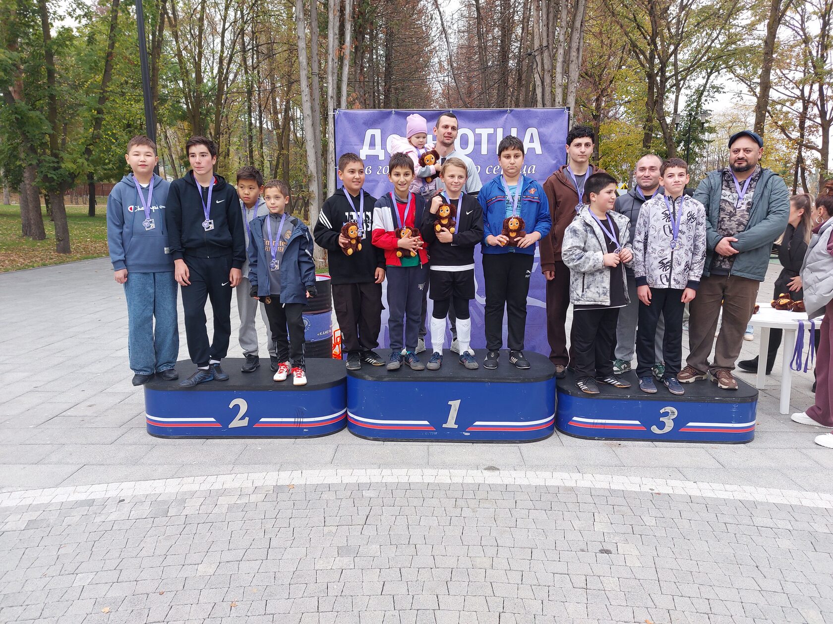 В завершение праздничного дня начальник управления по культуре, курорту, спорту и туризму администрации Кисловодска Элеонора Даниэльян вручила памятные медали и мягкие игрушки «Чебурашка» победителям и призёрам турниров по настольному теннису, мини-футболу, шахматам и боулспорту.