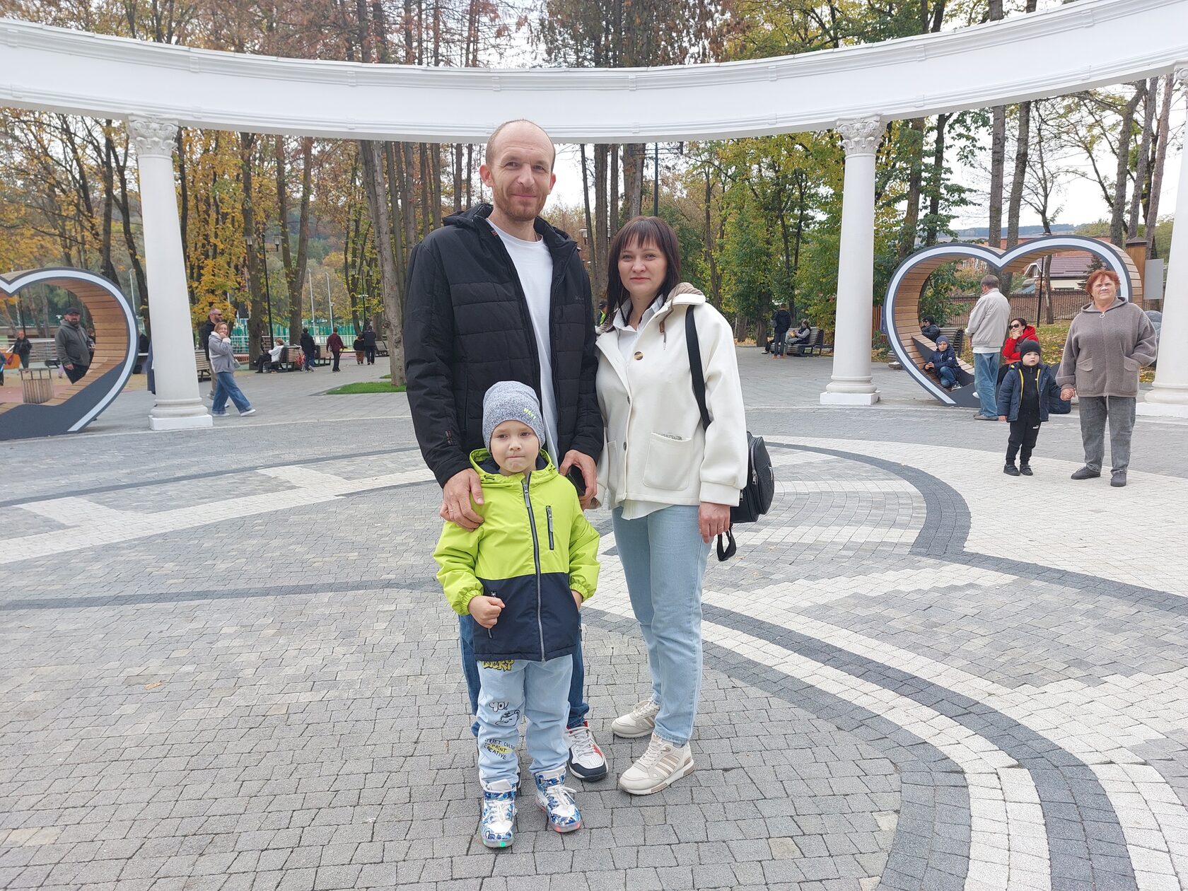 А в это время на главной площадке, где был установлен пьедестал для победителей, проходил марафон поздравлений. Первым решился подняться на пьедестал и в микрофон на весь город поздравить с праздником своего любимого папу Игоря Уварова пятилетний Тимофей. Затем он подбежал и обнял отца и маму.