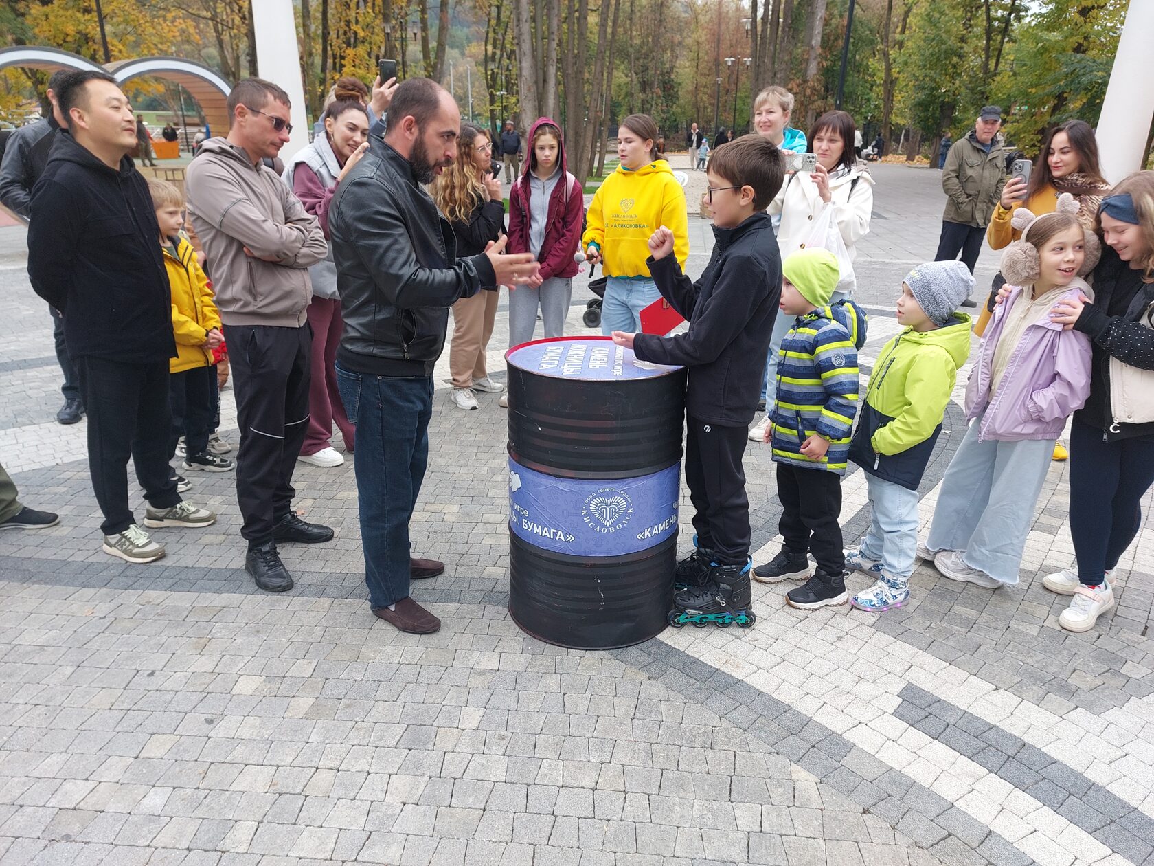 Захватил зрителей и чемпионат по игре «Камень, ножницы, бумага». Над специально оформленной бочкой папы и дети выбрасывали соответствующую комбинацию пальцев (фото 4).