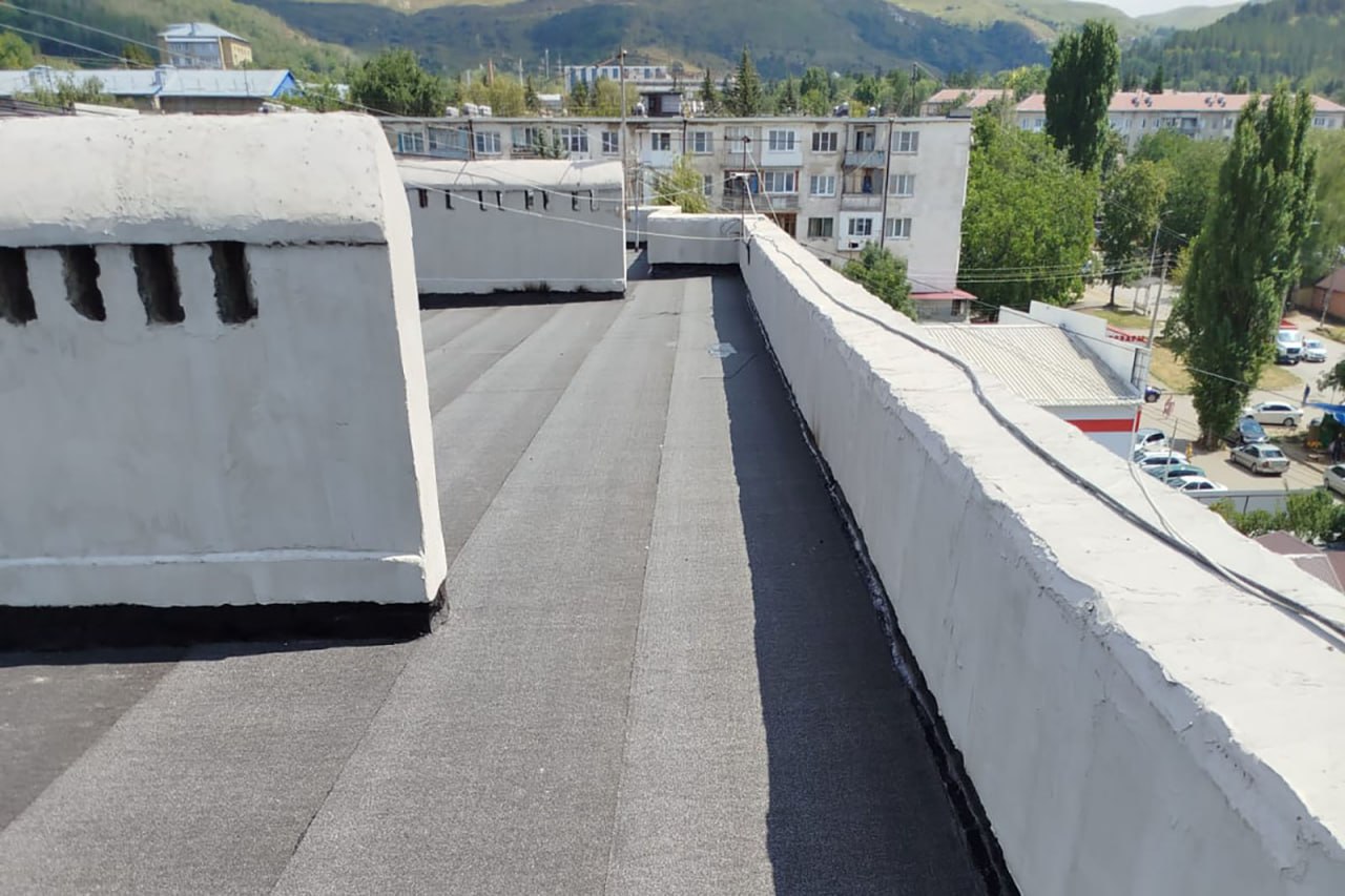 Подрядчики демонтировали старое покрытие, выровняли основание и уложили три слоя современных кровельных материалов. Также были полностью восстановлены парапеты и водосточная система.
