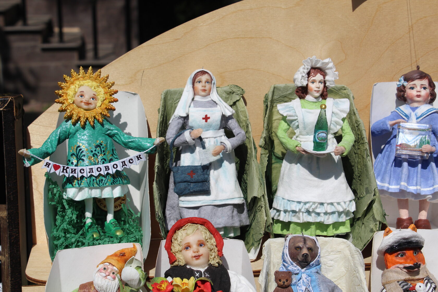 Работы Юлии уже обрели многочисленных поклонников. Некоторые гости специально приходят сюда увидеть новые шедевры талантливой кисловодской мастерицы. Особом спросом пользуются ватные игрушки на тему города-курорта: изящная нимфа с бутылочкой целебной минералки, трогательная медсестра (напоминание о военном прошлом города-госпиталя) и улыбчивое кисловодское солнышко.