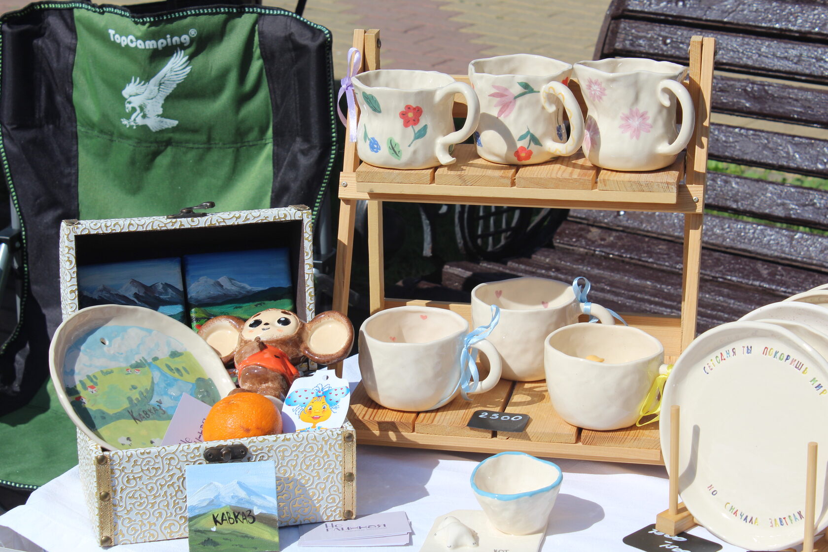 Курортный бульвар вновь стал центром притяжения для ценителей авторских работ. Здесь под открытым небом развернулась ярмарка, где можно найти уникальные сувениры на память о путешествии или подарки для близких. Гости могут приобрести плетёные сумки, кожаные обложки на паспорт, деревянные разделочные доски, текстильные грелки на чайники, брендированные игрушки с символикой Кисловодска и многое другое.