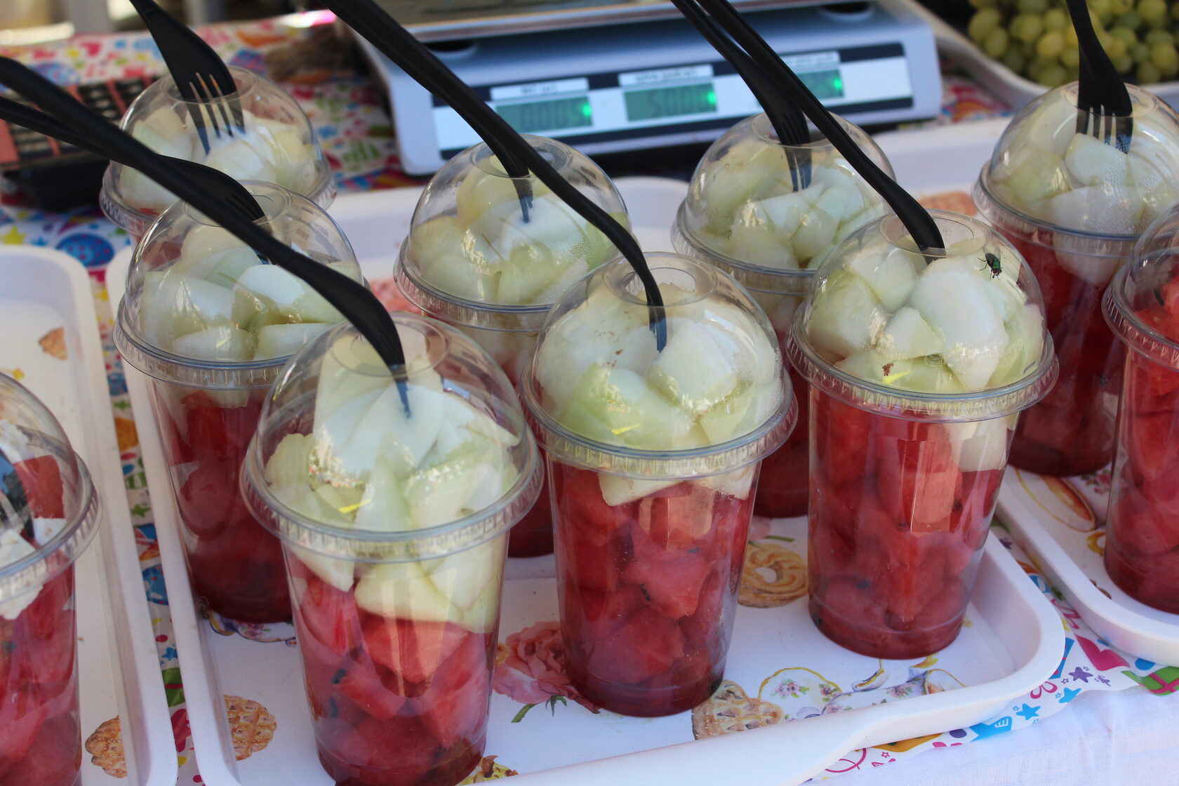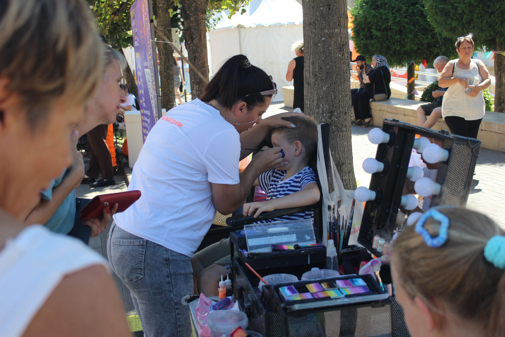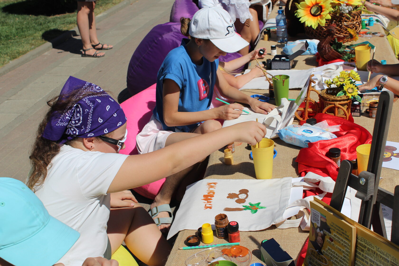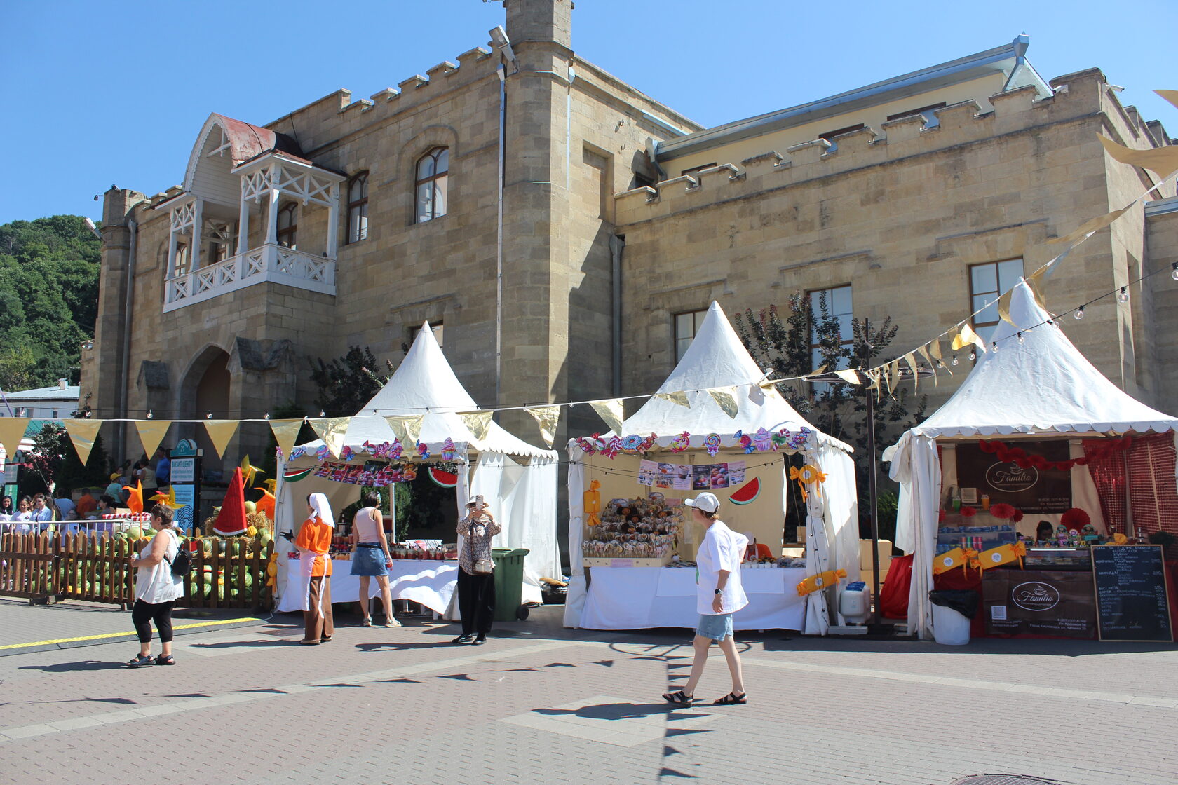 На ярмарке продают свежие фруктовые салаты, выпечку, лимонады и коктейли, а самых активных участников фестиваля угощают мороженым. Популярностью у детей пользуются аквагрим и временные блестящие татуировки.