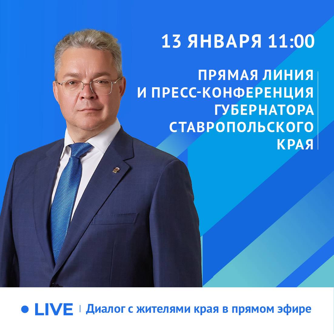 13 января губернатор Ставропольского края Владимир Владимиров вновь пообщается с жителями региона в рамках традиционной прямой линии. В этом году мероприятие впервые пройдет в формате, совмещенном с пресс-конференцией, что позволит увеличить время для ответов на вопросы.
