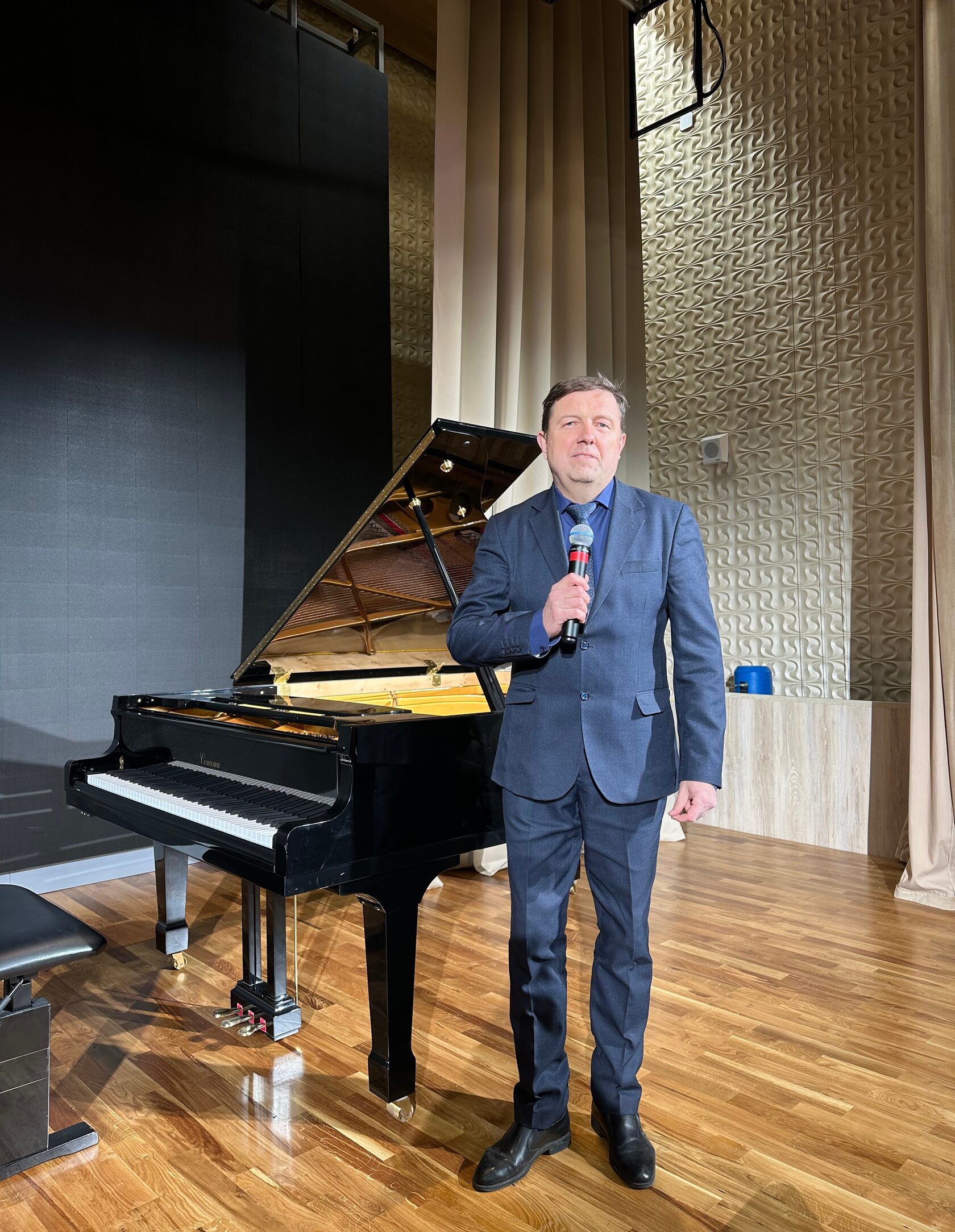 — Сегодня мероприятие особенное. На сцене выступят профессиональные артисты, которые параллельно с творчеством ведут занятия в нашей музыкальной школе, передавая воспитанникам бесценный сценический опыт. Мы стремились по-особенному отметить этот новый государственный профессиональный праздник, а как у нас это получилось — судить главному судье — зрителю, — прокомментировал событие директор музыкальной школы им. С. В. Рахманинова с 2004 года, почётный работник культуры Ставропольского края, Заслуженный работник культуры Российской Федерации Александр Евгеньевич Николаев (фото 1).