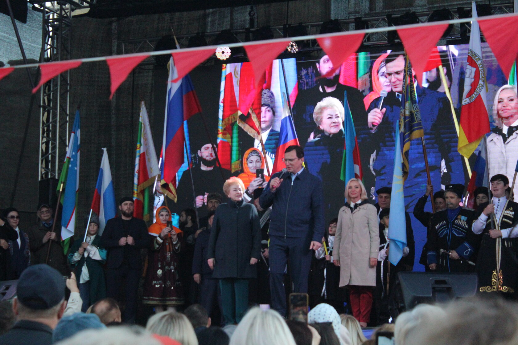Вечером к собравшимся на Курортном бульваре обратились председатель Комитета Государственной Думы Федерального Собрания Российской Федерации по культуре Ольга Казакова, глава города Евгений Моисеев и председатель городской Думы Любовь Волошина. В их выступлениях прозвучала общая мысль: сила России — в единстве народов.