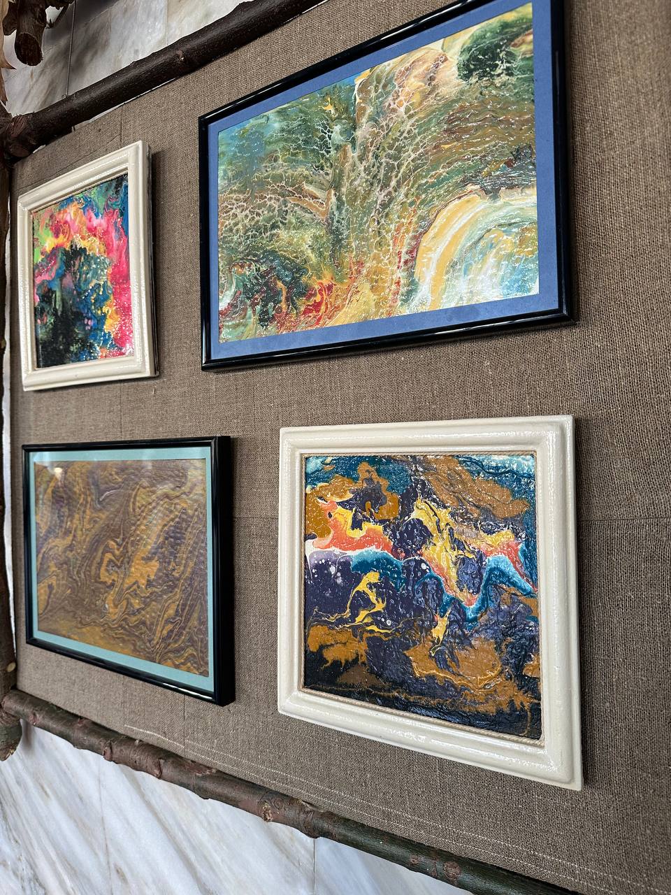 Краски на её холстах перетекают и смешиваются, создавая уникальные картины. На выставке вы не найдёте табличек с названиями — автор намеренно отказалась от них, чтобы зритель мог самостоятельно увидеть в работах что-то своё.