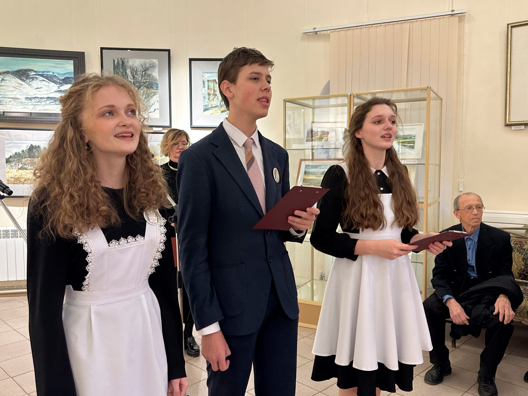 Торжественное открытие десятой выставки семилетнего проекта «Я люблю акварель» состоялось 20 ноября песней Булата Окуджавы «Живописцы» в исполнении трио солистов хора Свято-Никольской православной гимназии, удивительных ребят с чистыми и красивыми голосами, что сразу задало лирико-философское настроение всей выставке и её событиям.