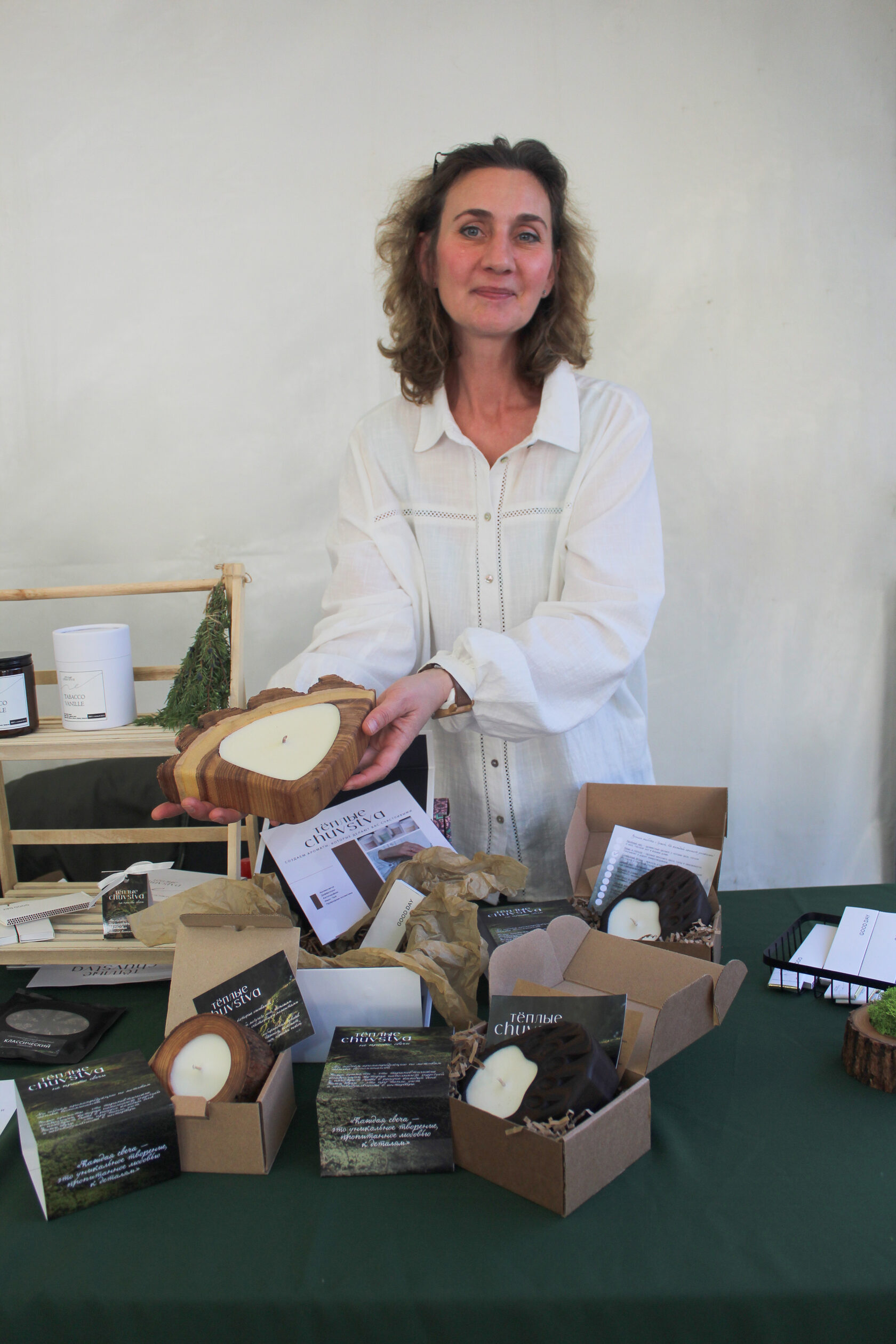 Среди участников ярмарки — Раксана Зорина из Карелии, представляющая аромапродукцию семейного бренда. Для мастера ее изделия — не просто предметы интерьера.