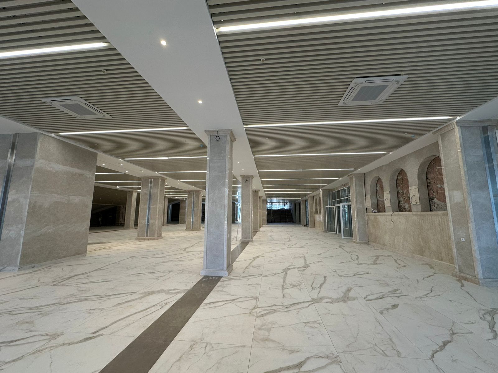 В настоящее время на объекте, расположенном на проспекте Победы, выполняется внутренняя отделка помещений и установка дверных проёмов. Одновременно с этим монтируются инженерные коммуникации, производится монтаж технологического оборудования, а также выполняются работы по комплексному благоустройству прилегающей территории.