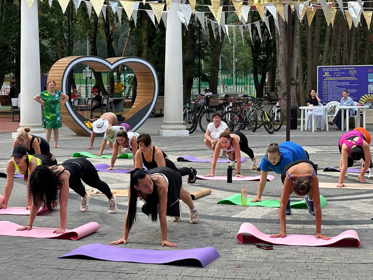 Дыхательная гимнастика с Галиной Петровной Иващенко, йога в гамаках и на сапбордах с Анастасией Нестеровой и Викторией Величко, велоспринт вокруг Старого озера с Екатериной Тебердуковой и аквааэробика со Светланой Вечтомовой — всё это сделало утро участников по-настоящему бодрым и радостным, дав им мощный заряд позитива на весь последующий день. Чудеса гибкости и ловкости на своих показательных выступлениях и мастер-классах продемонстрировали воздушные гимнасты от студии танца «Сан Сити». Развить уже взятый темп собравшимся позволили жаркие танцы под водой от «Дрим Форс» и веселые старты от ДК «Аликоновка».