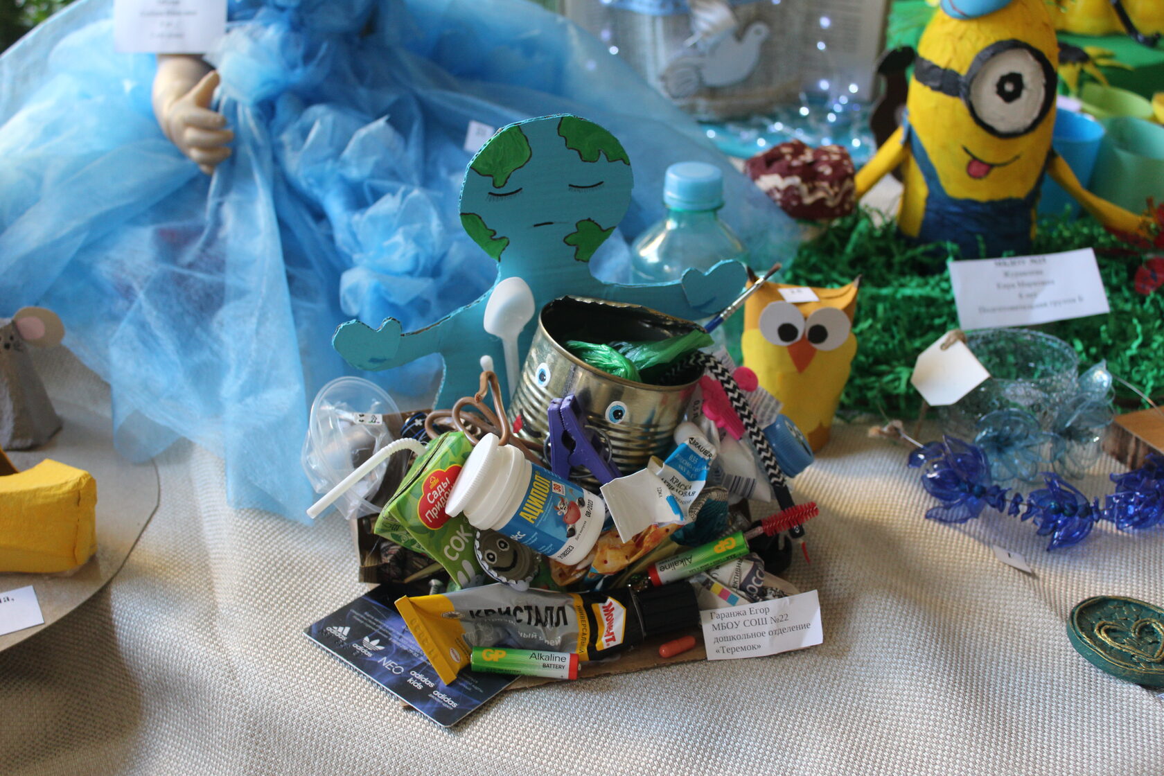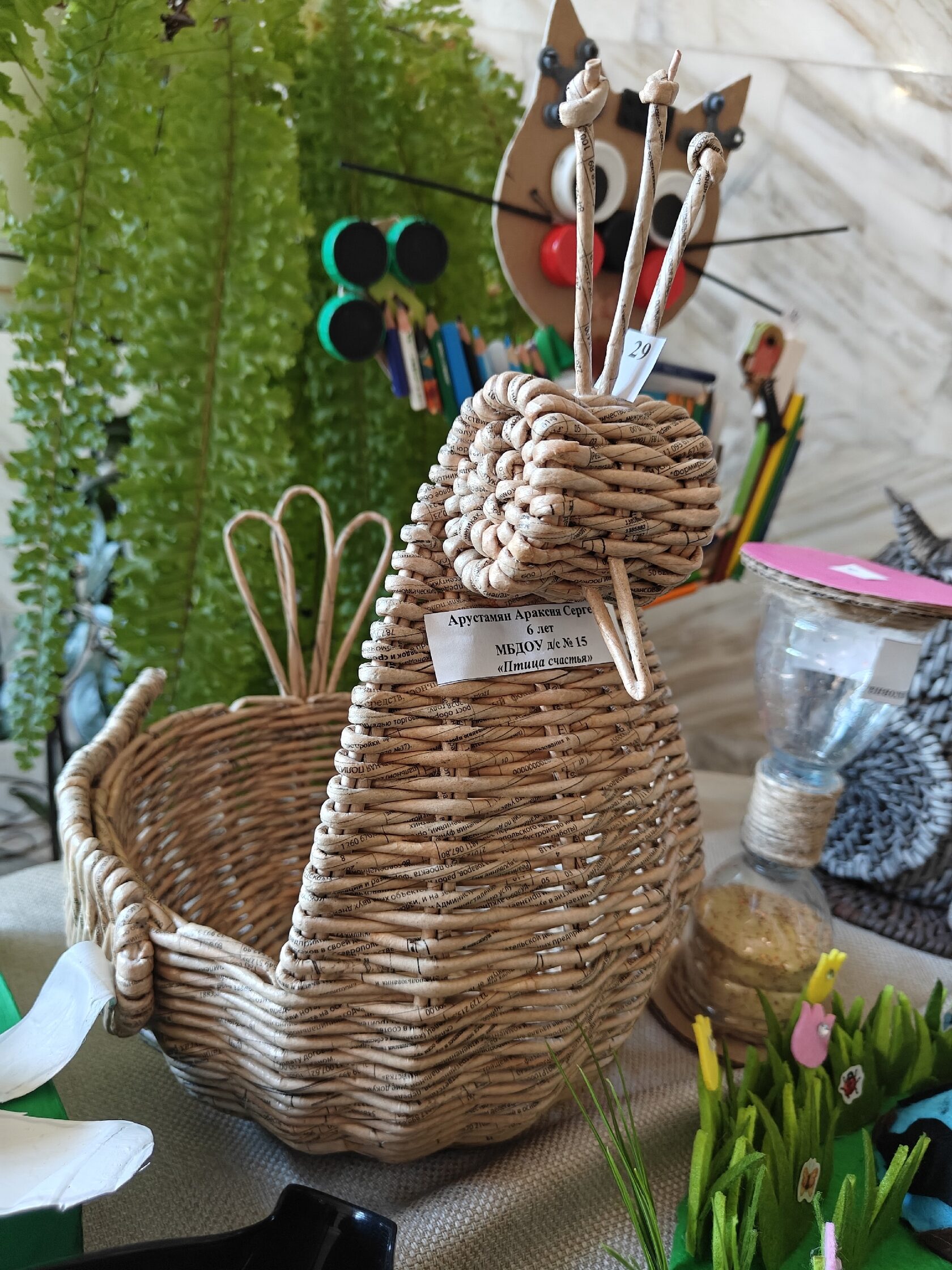 Выставочный стол манил к себе и детей, и взрослых. Взгляды скользили от хрупкой картины-бабочки, собранной из яичной скорлупы, к изящным украшениям, в которых уже не узнать пластиковую бутылку. Рука сама тянулась к птице счастья, аккуратно сложенной из страниц «Кисловодской газеты». Рядом с магнитами из спрессованных стаканчиков и органайзером из втулок стояла конфетница. Её изготовили из виниловой пластинки фирмы «Мелодия», когда-то звучавшей голосом Владимира Высоцкого.